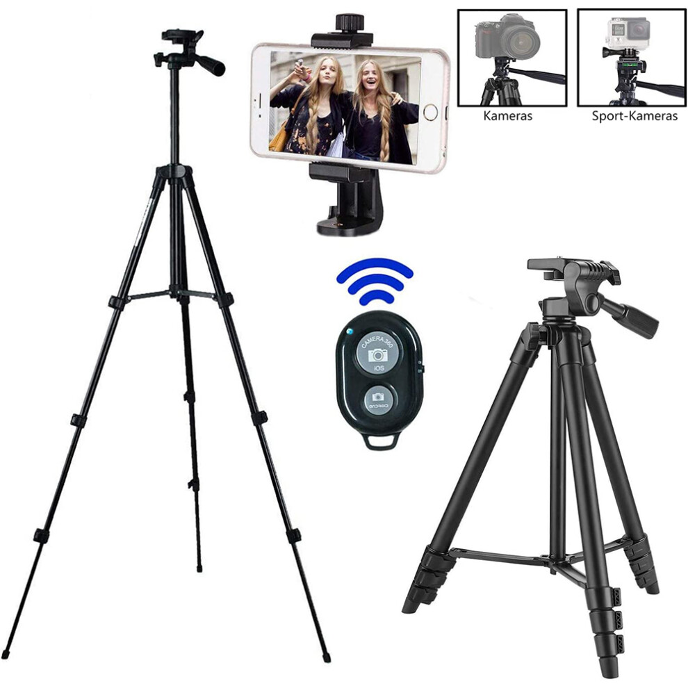 Versatile 57-Inch Phone&Tablet Tripod, Extendable Stand for Video Recording and Live Streaming, 360 Rotatable 3-Way Pan Head for Optimal Angles,