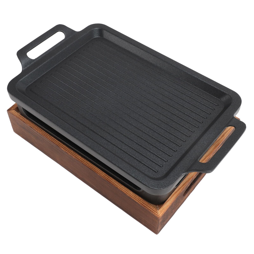 Tabletop Barbecue Companion, Japanese Style Grill Smokeless Cast Iron Grill, Portable Hibachi Grill Aluminium Alloy & Wooden Base