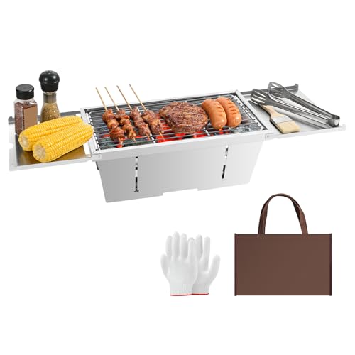 For AREPLY Charcoal Barbecue Grill, Portable Stainless Steel Smoker BBQ, Folding