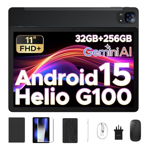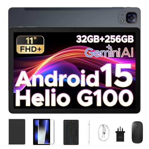 DOOGEE Tab E3 Android 15 Tablet, Helio G100 Octa-Core Android Tablets with Sim Card Slot, 32GB+256GB/2TB, Gemini AI Gaming Tablet 11 Inch, 8800mAh Battery, Tablets with Keyboard, Pen, Mouse&Case-Black