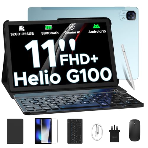 DOOGEE Tab E3 Android 15 Tablet, Helio G100 Octa-Core Android Tablets with sim card slot, 32GB+256GB/2TB, Gemini AI Gaming Tablet 11 Inch, 8800mAh Battery, Tablets with Keyboard, Pen, Mouse&Case-Blue