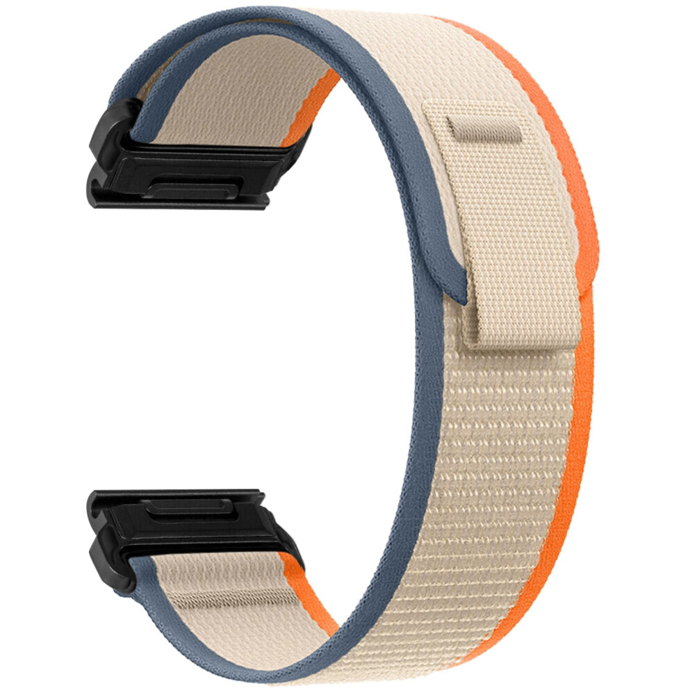 26 mm QuickFit Bracelet for Garmin Tactix 8, Fenix 8, 7X, 6X, 5X GPS - Elastic Nylon Replacement Strap in Orange & Beige