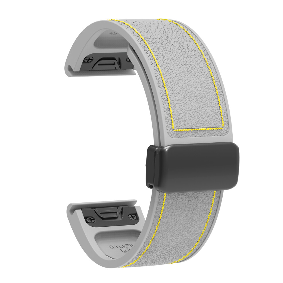 (Grey) Silicone Watch Band for Garmin Fenix 7X/6X /Tactix 8 51mm AMOLED Version Magnetic Buckle Leather Texture Strap