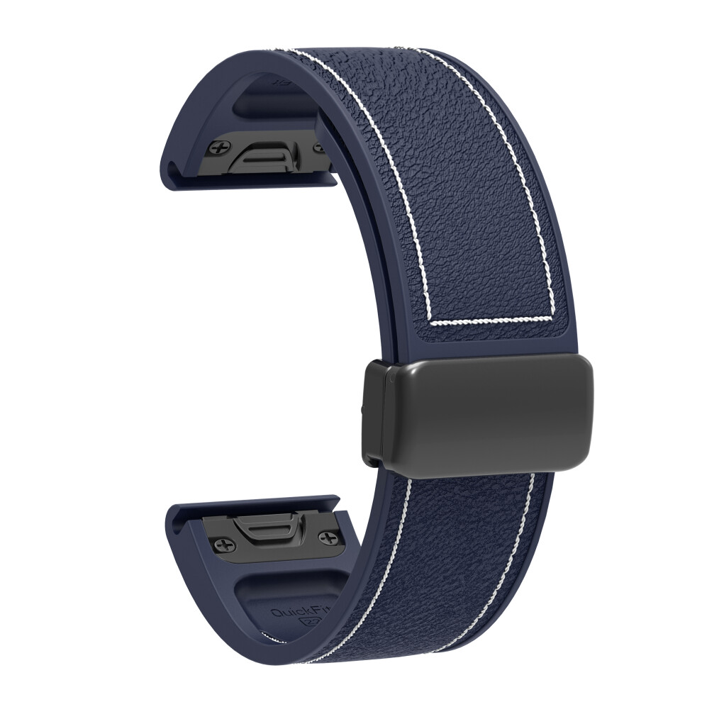 (Dark Blue) Silicone Watch Band for Garmin Fenix 7X/6X /Tactix 8 51mm AMOLED Version Magnetic Buckle Leather Texture Strap