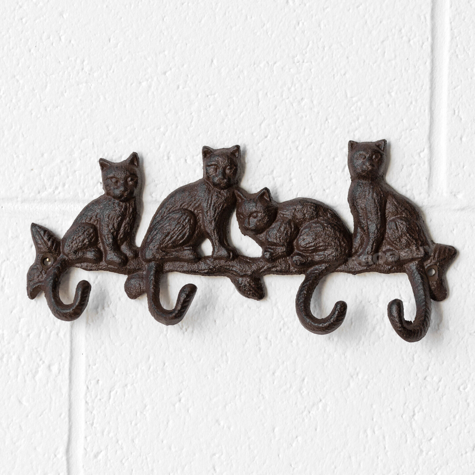 Cast Iron Garden Cats Tails 4 Coat Hook Hanger Indoor Outdoor Key Storage Rack