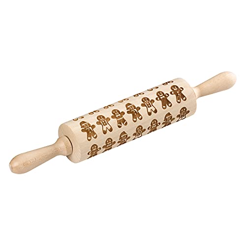 Tala Originals Beechwood Large Revolving Rolling Pin with Engraved Snowflake Patterned Design, 38cm x 6cm, Natural, 10B31456