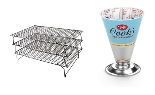 Tala 3 Tier Non-Stick Cooling Rack - Space Saving Collapsible Oven Racks - Cake Cooling Rack for Baking Freshly Baked Muffins, Cookies & Biscuits - 40 x 25cm, Black + Tala Originals Cooks Measure