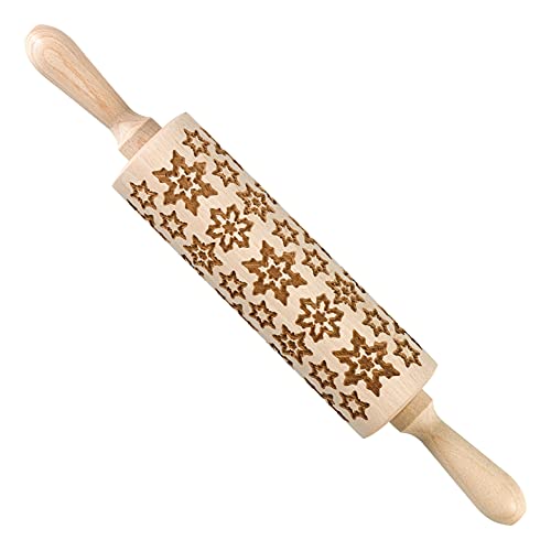 Tala Originals Beechwood Large Revolving Rolling Pin with Engraved Snowflake Patterned Design, 38cm x 6cm,Natural