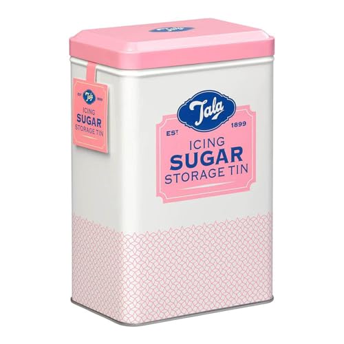 Tala Originals Metal Pink and Cream Nostalgic Design Storage Tin, 18.5x18.5x19 cm | Holds a Full Bag of Icing Sugar | Stylish Kitchen Storage