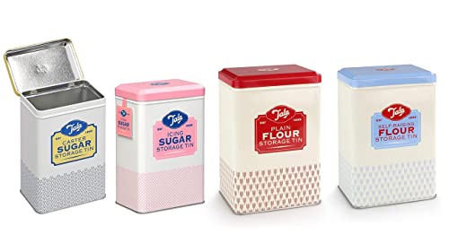 Tala Originals Food Storage Tin Set, Storage Tins for Self Rasing Flour, Plain Flour, Caster Sugar and Icing Sugar, Each tin holds a full bag, Ideal for Storage, Perfect for Display!