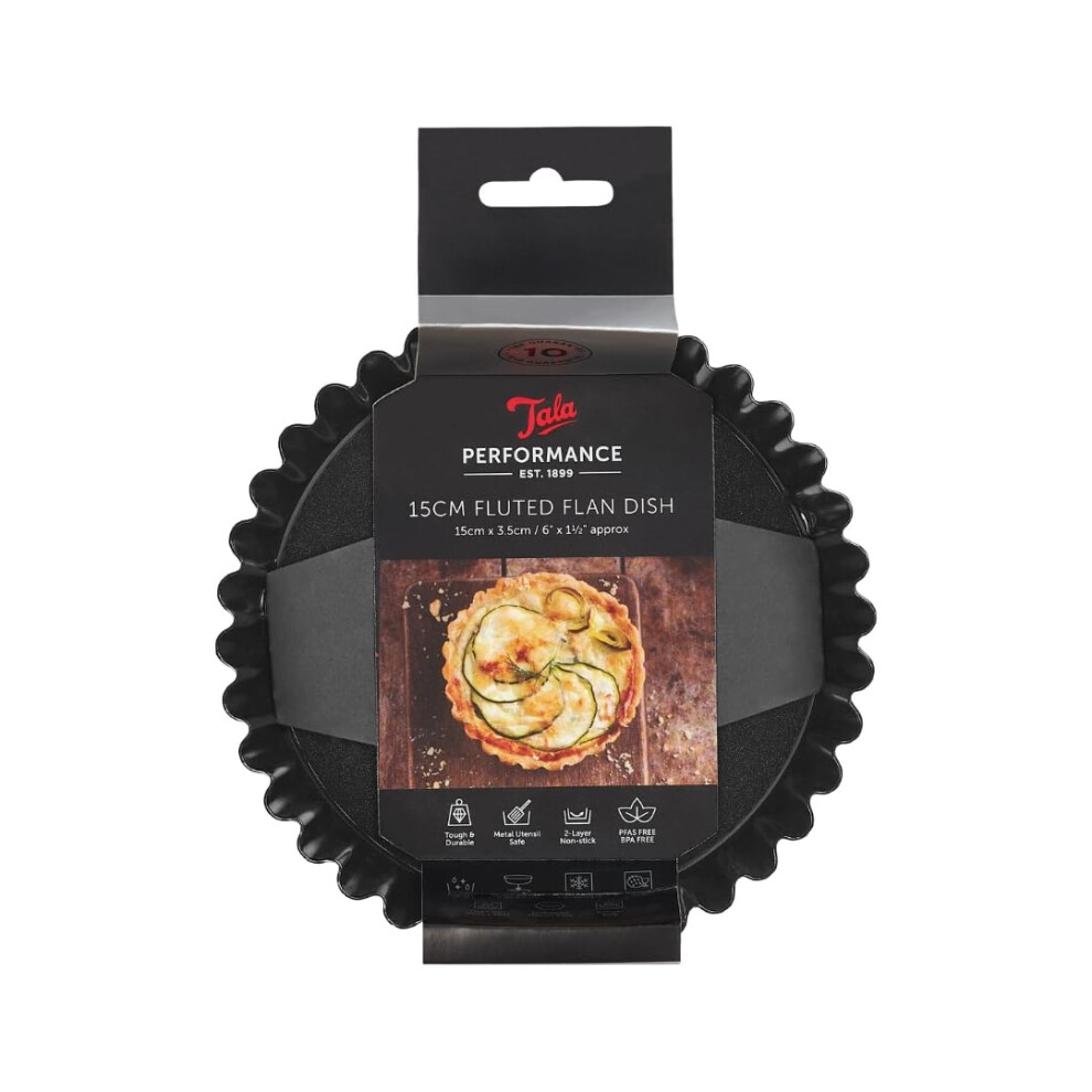 Tala Performance 15.3 cm Dia Round Fluted Tart Tin, Professional Gauge Carbon Steel with Eclipse Non-Stick Coating, with Loose Base, Perfect for