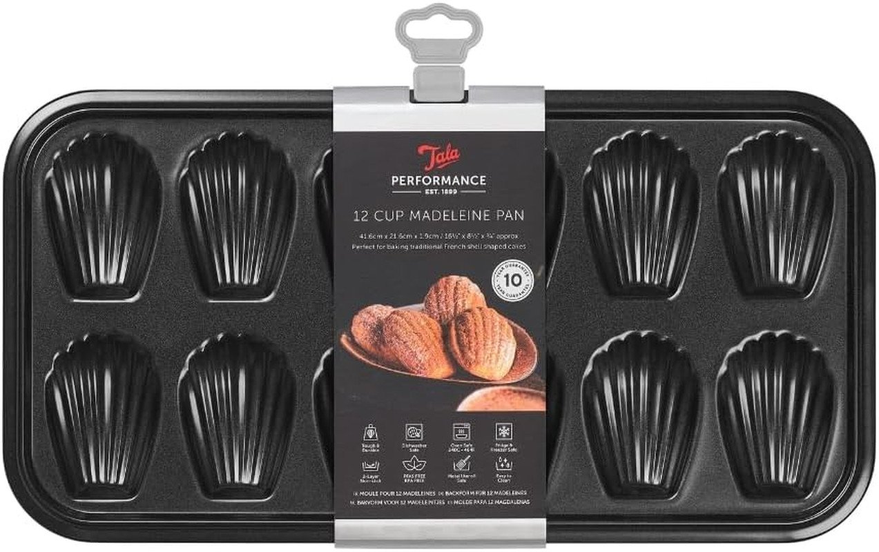 Tala Performance 12 Cup Madeleine Shell Cake Pan, Professional Gauge Carbon Stee