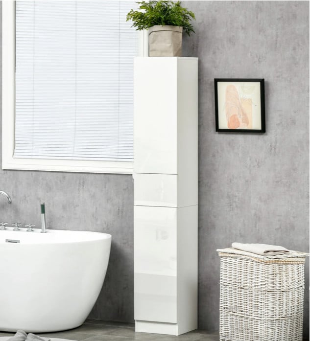 Homme Concept - White Tall Bathroom Cabinet, Narrow Bathroom Storage Cabinets Unit, Free Floor Standing Tallboy Cupboard, Slimline Multi-Purpose Organiser for Bathroom, Living Room, Kitchen, Hallway.