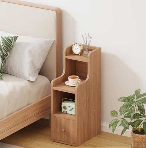 Redd Royal Tall Slim Bedroom Bedside Table Cabinet Nightstand with Storage Shelf and Drawer, Living Room Corner Small Sofa Table Side Table End Table for Narrow Space (20cm single drawer oak)
