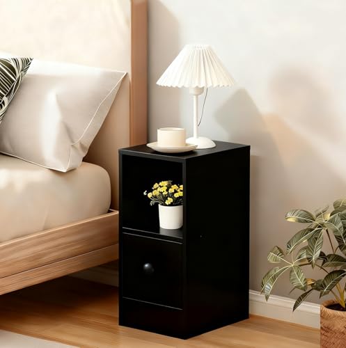 Redd Royal Tall Slim Bedroom Bedside Table Cabinet Nightstand with Storage Shelf and Drawer, Living Room Corner Small Sofa Table Side Table End Table for Narrow Space (20cm single drawer black)
