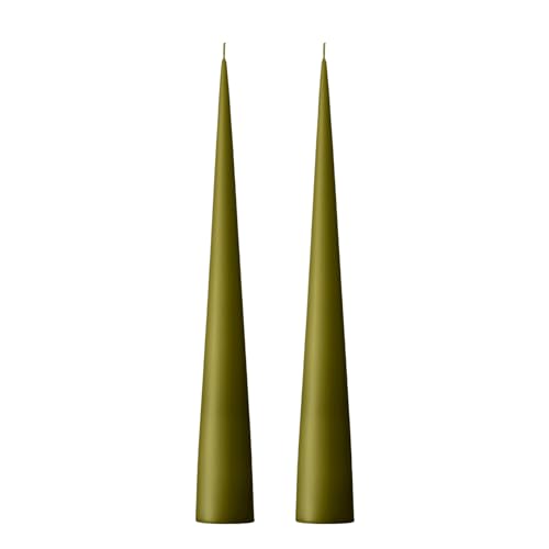 Ester & Erik Olive Green Cone Candles - Set of 2 in Giftbox - 25 cm Tall Cone Candles with Cotton Wick - Made from 100% Fragrance-Free Unscented Pure Paraffin Wax - 13+ Hour Burn Time