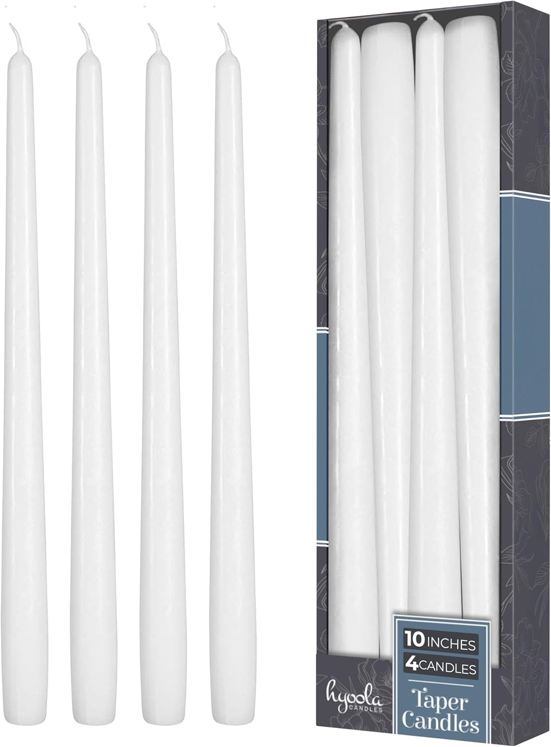 Hyoola Tall Taper Candles - 250 mm (10 Inch) White Unscented Dripless Taper Can