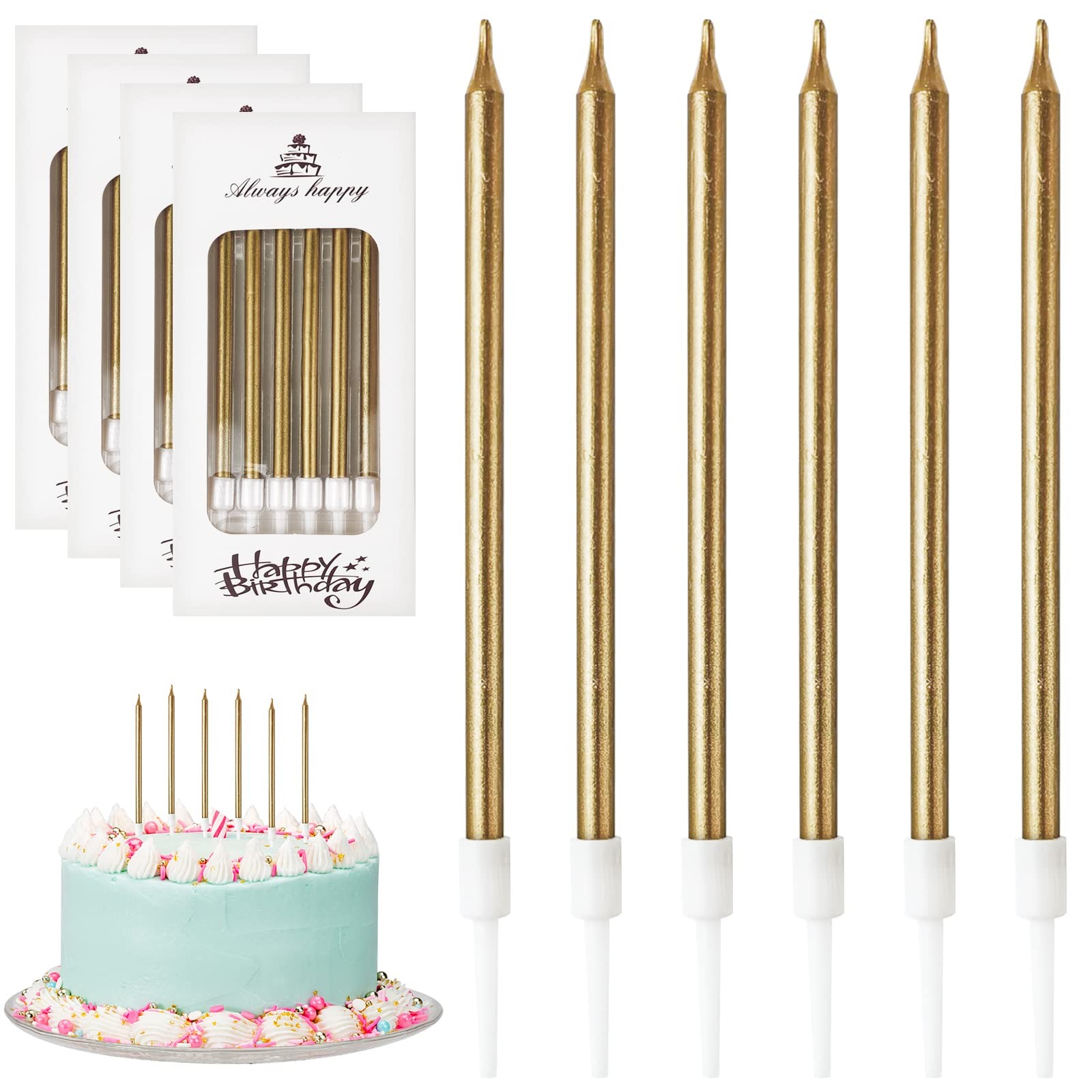 LUTER Metallic Birthday Candles in Holders Tall Birthday Cake Candles Long Thin