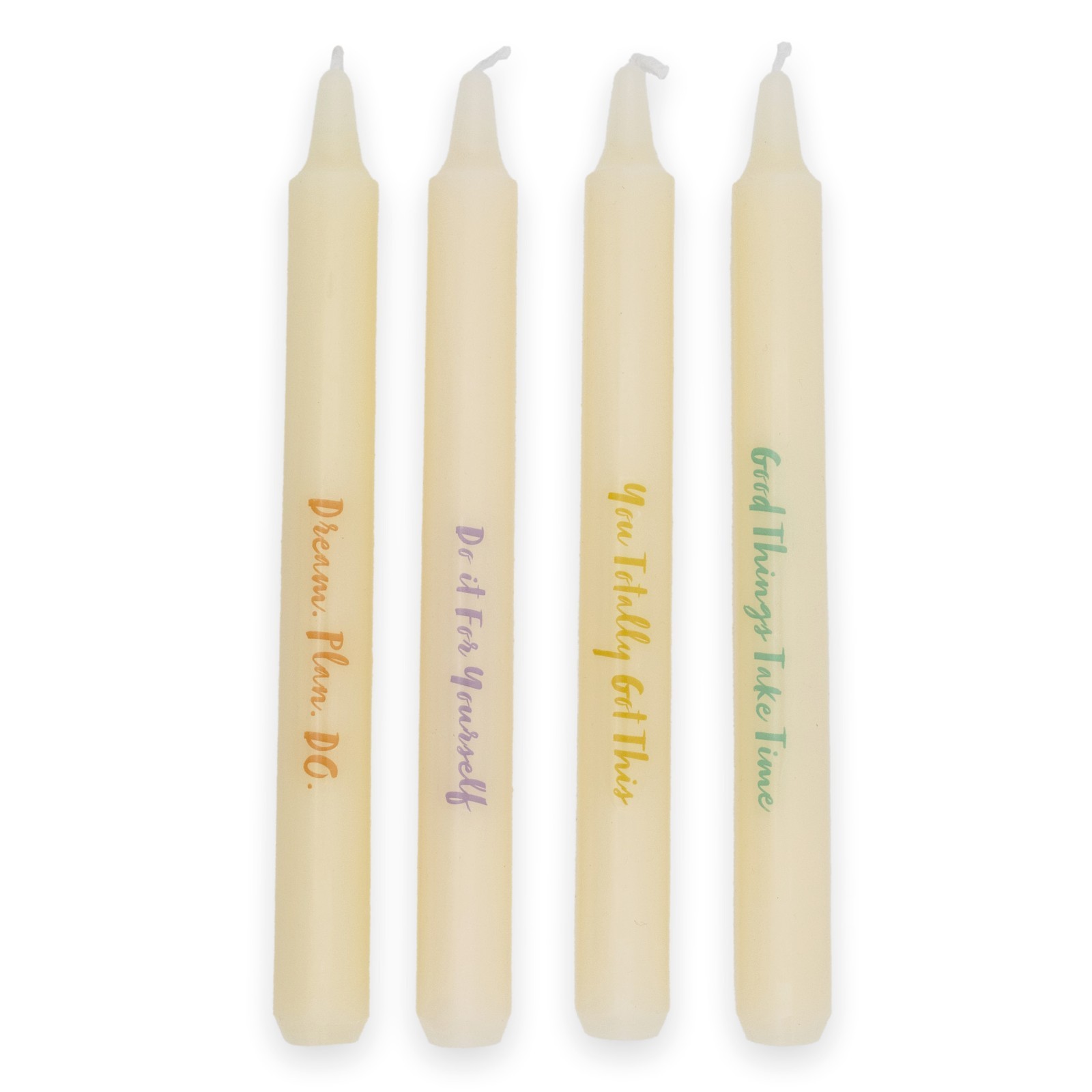 Motivational Quote Dinner Candles Set of 4 Gift Box Tall Table Candles