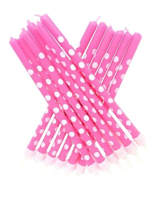 Polka Dot Tall Candles Pink with Holders - Pack of 12 - 10cm - Happy Birthday