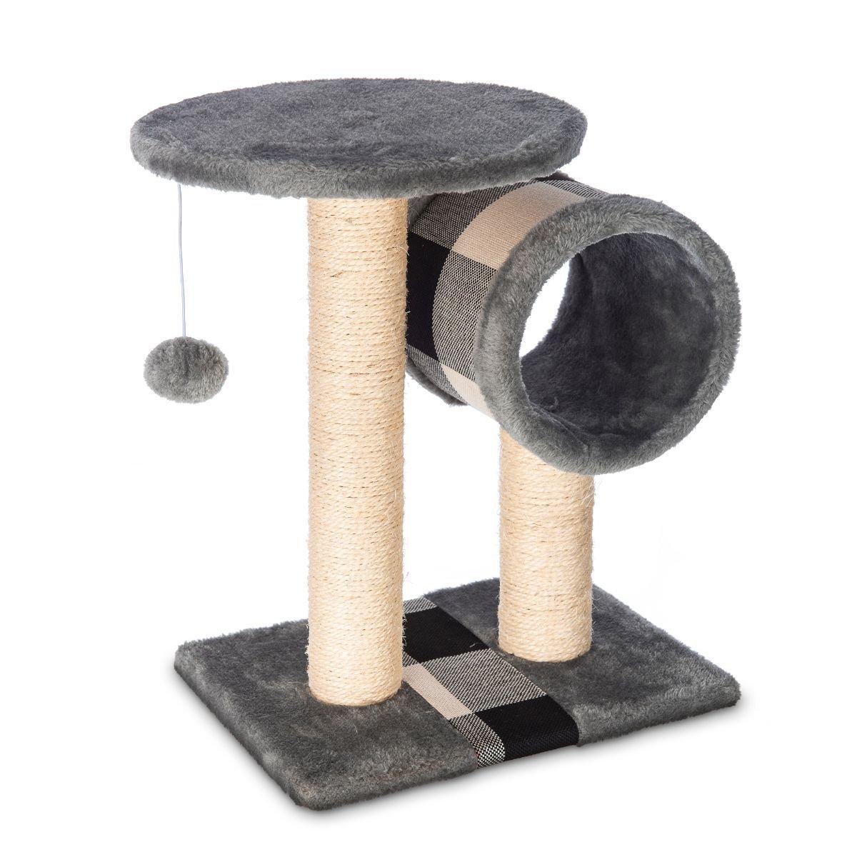 ATEK Beige Cat Scratching Post with Tunnel & Mouse Toy â Sisal Bed, 20x20x29 cm | Tall Scratch Interactive Dangling Ball