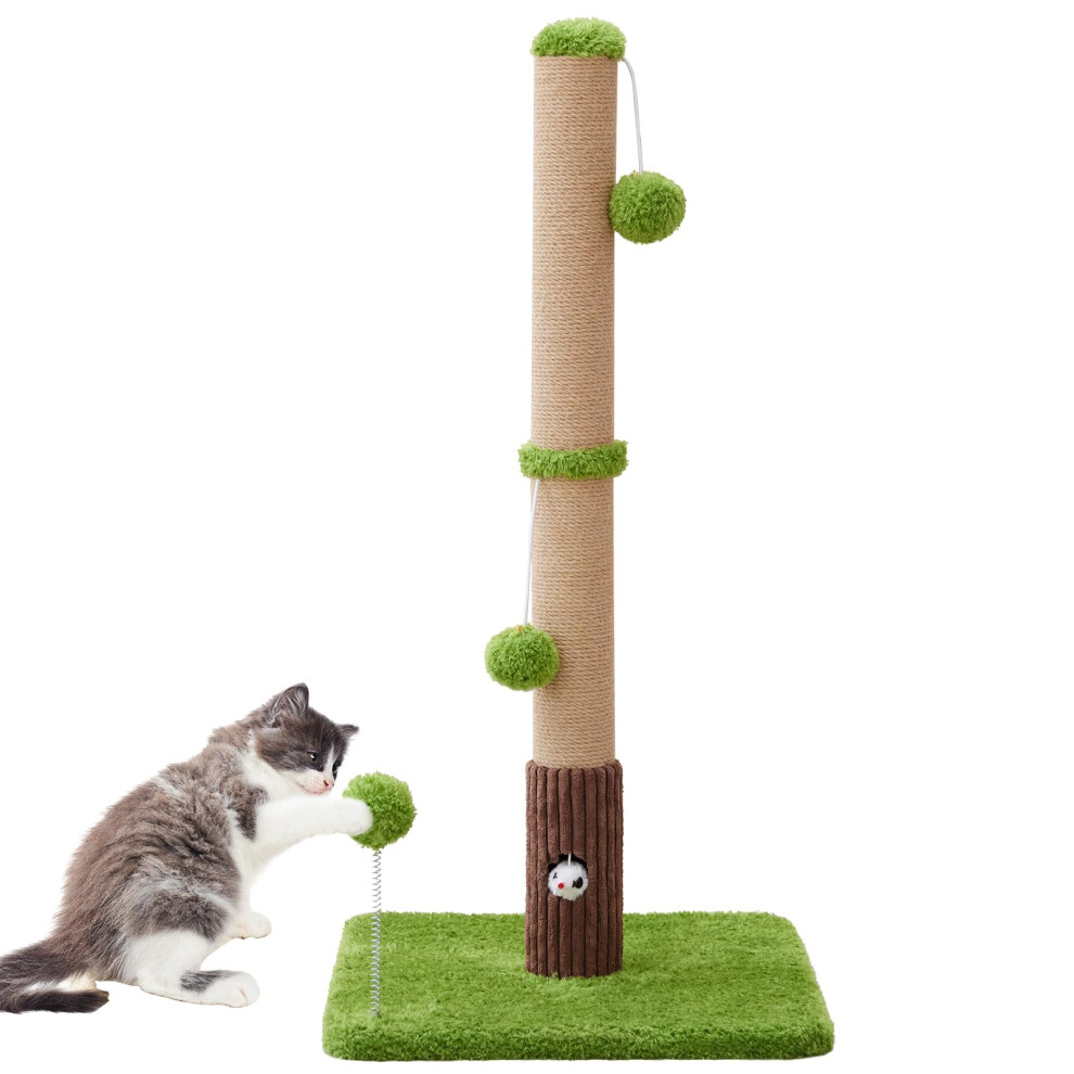 Dimaka 74cm Tall Cat Scratching Post, Scratch Post for Large Cats with 4 Teasing Hanging Ball, Natural Sisal Rope (Vertial Tree)