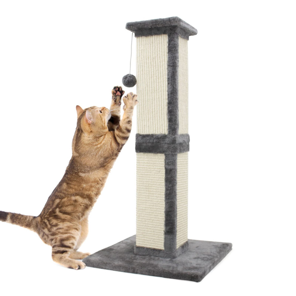 SONGWAY Tall Cat Scratching Post - Natural Sisal Cat Scratcher with Teasing Toy Ball and Covered with Soft Plush, Scratch Toy for Cats Kittens, Gray