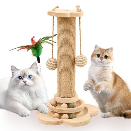Xeticey Cat Scratching Post for Indoor Cats Scratcher Multifunctional Sturdy with Scratcher Post, Funny Cats Scratch Pole, Solid Wooden Base, Interactive Track Cat Scratch Post (28 * 46cm Tall)