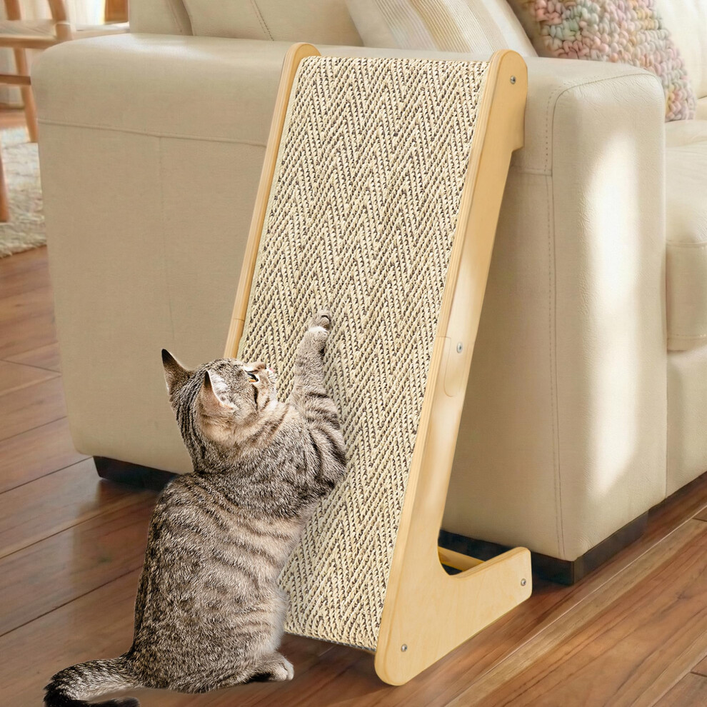 PETKARAY L-Shaped Dual-Use Sisal Cat Scratcher, 64 cm Tall Natural Sisal Cat Scratching Post, L-Shaped Pet Furniture Protector with Catnip, Chevron