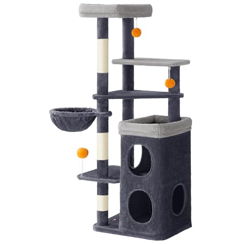 Feandrea Tall Cat Tree, Multiple-Level Cat Tower with 2 Caves, Basket, 3 Scratching Posts, 3 Perches, Dark Grey PCT007G02
