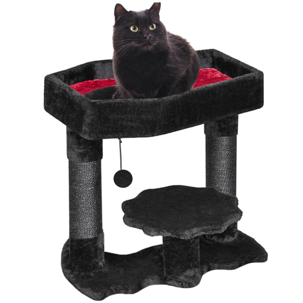 Gothic Cat Tree 20 Inch Tall Black Cat Tower with Sisal Scratching Posts Soft Bed and Spider Toy Halloween Pet Furniture