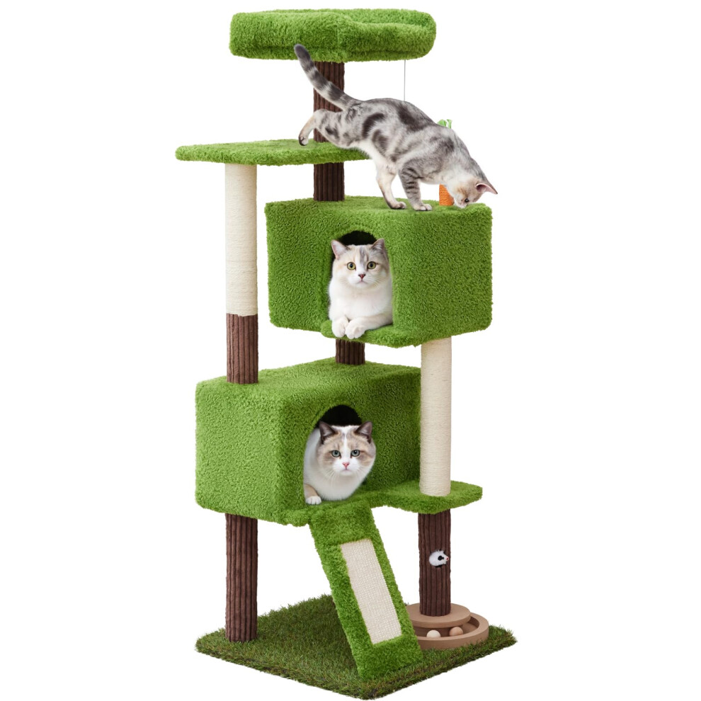 WOOCHPET 55in Tall Cat Tree Tower with Cat Toys for Indoor Multi-Level Cozy Large Cat Tree with Condo Top Perch and Sisal Scratching Posts, Green Cat