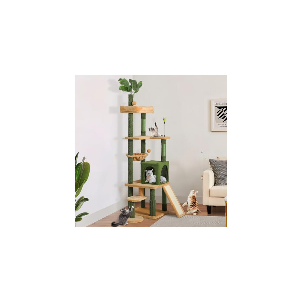 YITAHOME Tall Cat Tree for Indoor Cats, 190CM Multi-Level Cat Tower with Sisal Scratching Posts & Ramp, Plush Perches, Hammock, Spacious Condos, Cat