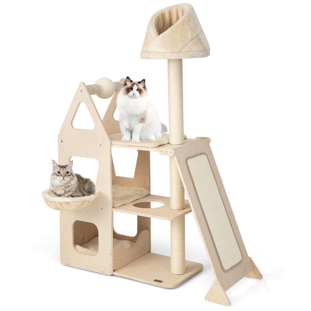 126cm Tall Solid Wood Cat Tree Home 4-Tier Cat Tower w/Beech Post