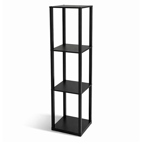 DIVCHI 4 Tier Shelving Unit – Slim Black Freestanding Storage Shelves for Home, Office & Bathroom, MDF Wood Tall Shelving Unit, Corner Storage Utility Storage Free Standing Shelf Organiser (Black)