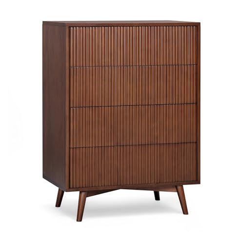 Teamson Home Tremolo 106 cm Tall Dresser Chest of Drawers with 4 Push-Open Drawers, Fluted Wood Detailing and Acacia Veneer Finish, Walnut