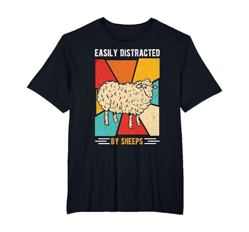Easily Distracted by Sheep Sheeps Wildlife Animal Fan T-Shirt, Men's Big and Tall, Black, 4X Tall