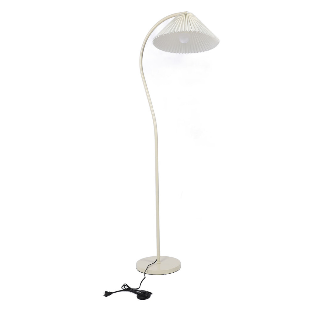 Modern Tall Floor Lamp with Beige Pleated Shade â Wrought Iron, Foot Switch