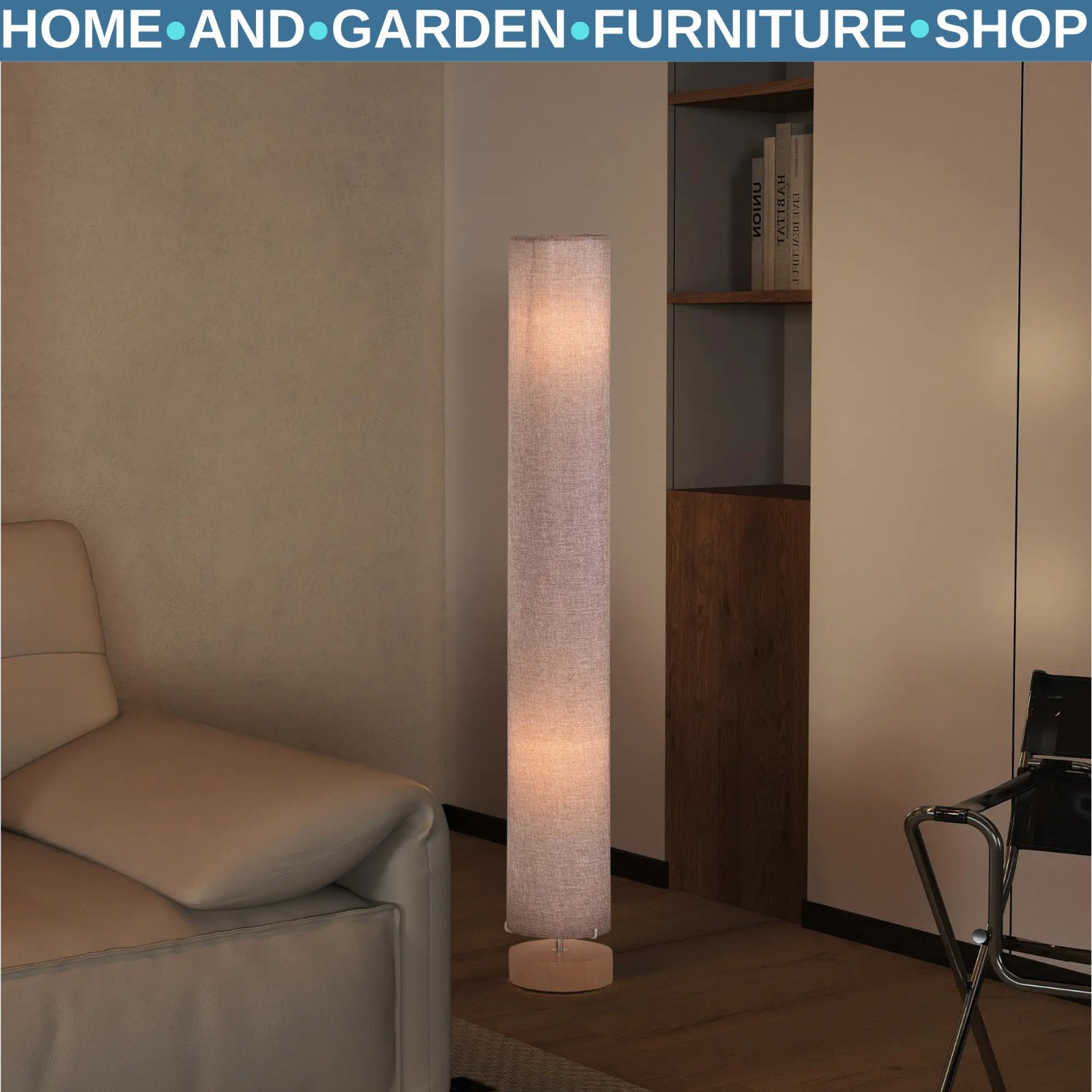 120cm Tall Linen Floor Lamp with Wood Base Steel Frame Stylish Home