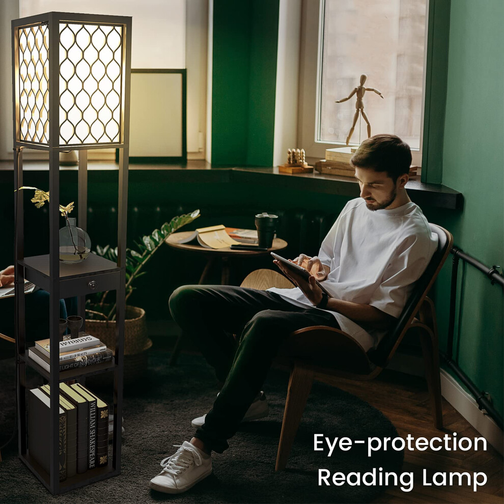 Tall Floor Lamp Modern Room Light Free Standing Shelf Tier Bookcase Display Unit