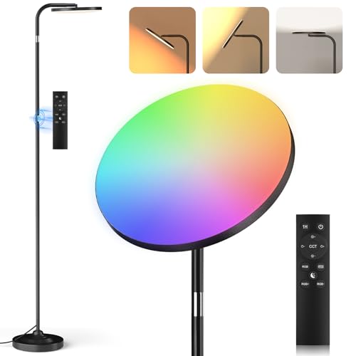SIBRILLE RGB Floor Lamp, 36W Bright LED Standing Lamp, Stepless Dimming Color Changing Torchiere Floor Lamps with Remote, 350°Rotating Modern Tall Floor Lamp for Living Room, Gaming Room