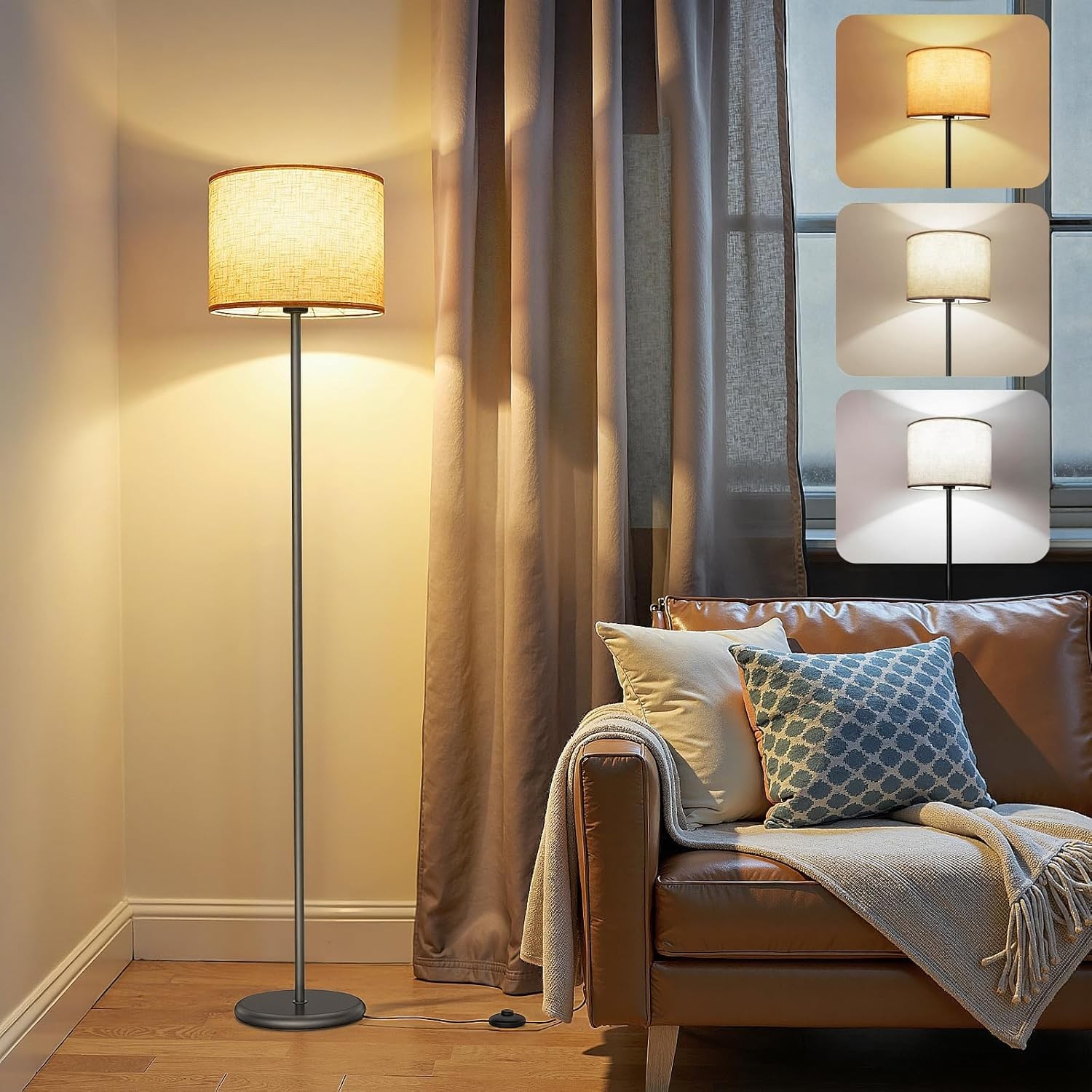 Floor Lamps for Living Room, Farmhouse Standing Lamp with Linen Lampshade Reading Standing Lamp for Living Room, Tall Pole Lamp for Bedroom/Family/Office (White)