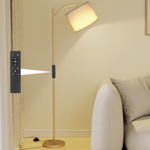 PULUOMIS Floor Lamp, Floor Lamps for Living Room, Standing Lamp with LED Bulb, Adjustable Standards Tall Lamp with Remote, Gold