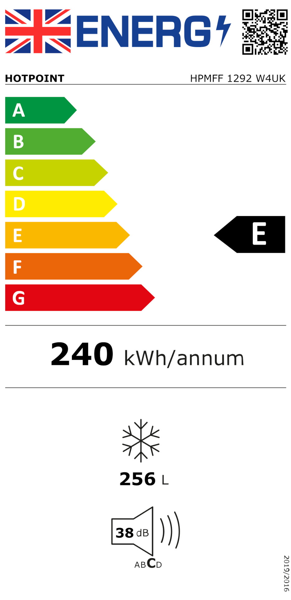 HPMFF 1292 W4UK 256L No Frost Tall Freezer - White
