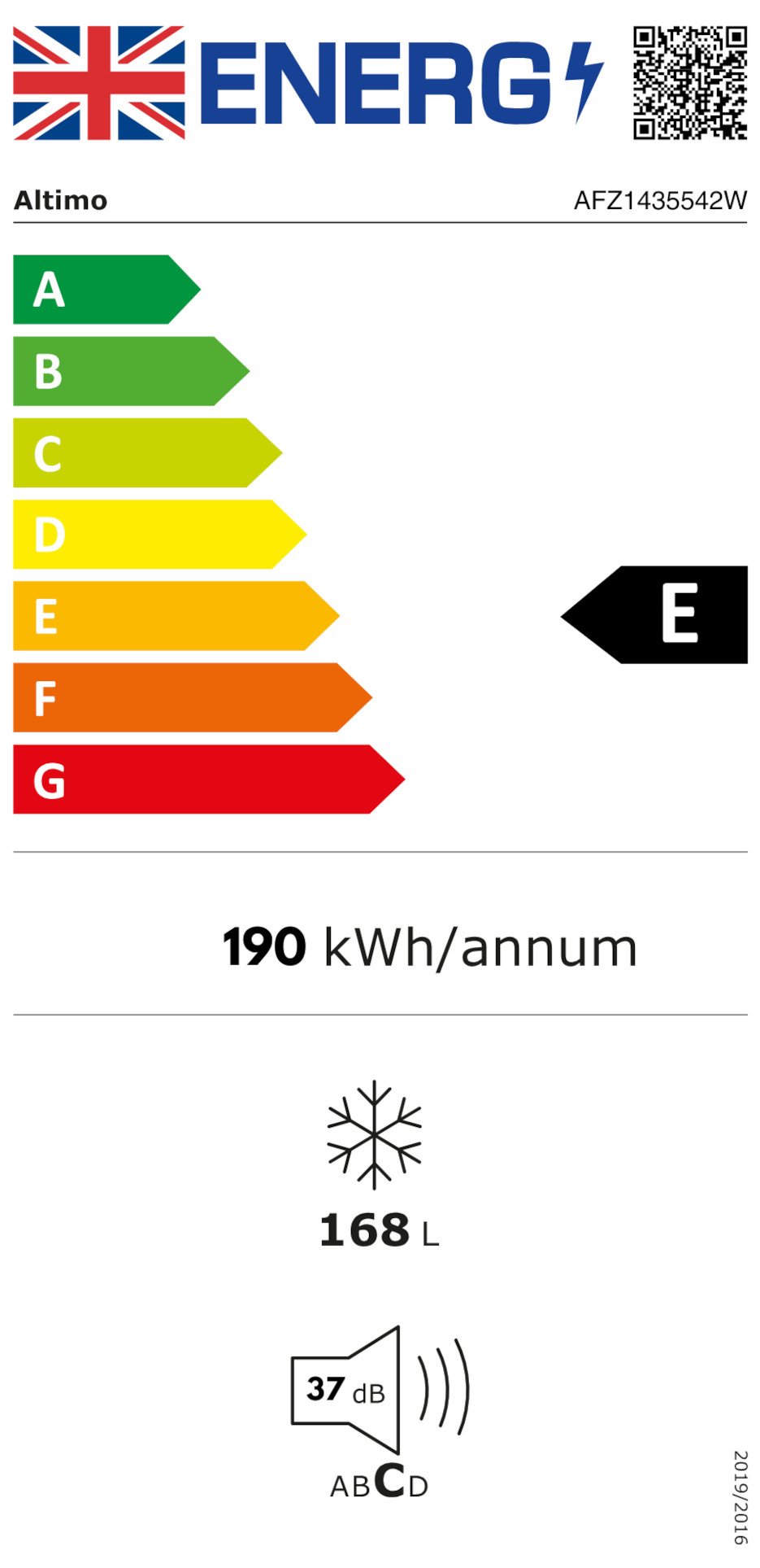 AFZ1435542W 168L Tall Freezer - White