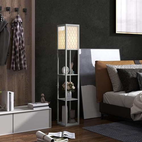 HOMCOM Floor Lamp with Shelves, Modern Tall Standing Lamps