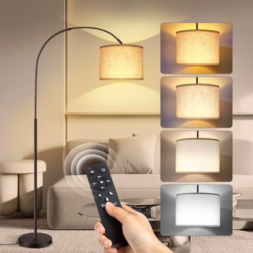 OUTON Arc Floor Lamp with Remote Control, 4 Colour Temperature Dimmable Modern Floor Standing Lamp, 70″ Tall Lamps for Living Room, Bedroom or Office, 9W LED Bulb Included, Black(with UK Plug)