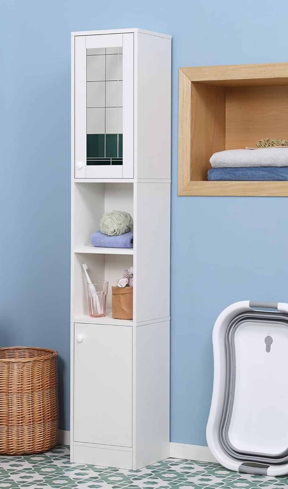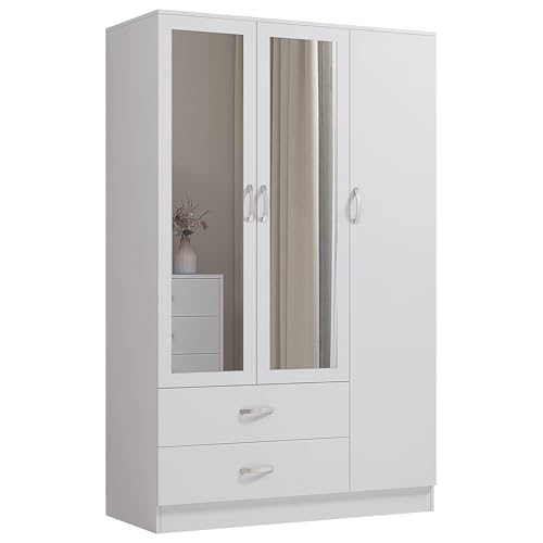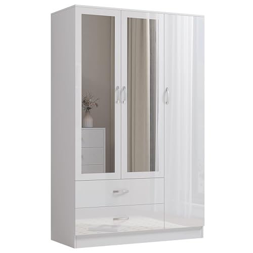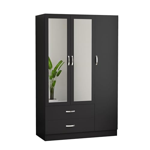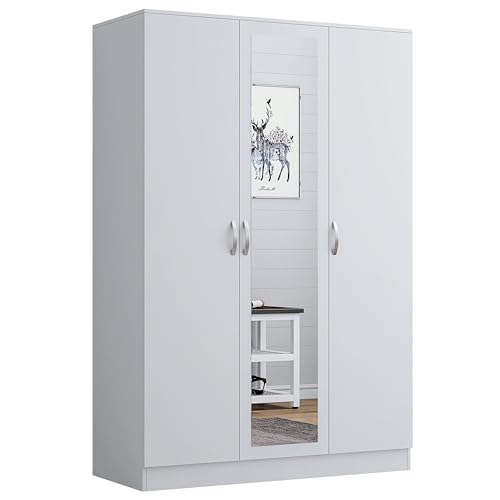 Nera 3 Door Wardrobe with Mirror Shelves and Hanging Rail Tall Wardrobes for Bedrooms Storage (Grey)