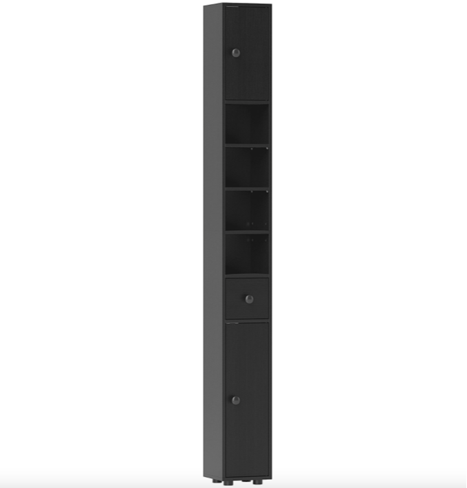 Multigot Bathroom Tall Cabinet, Wooden Slim Cupboard with 1 Drawer, 2 Cabinets & 5 Adjustable Shelves, Narrow Organizer Unit for Bedroom Living Room Hallway (Black)