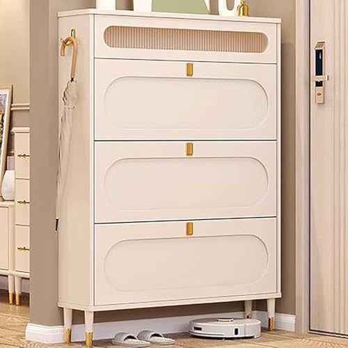 Atahome Slim Shoe Cabinet Narrow Shoe Storage Cabinet for hallway wall mounted thin flip down Tall Metal Shoe Rack Storage Organiser Shoe cupboard Indoor Troy 4-Drawer (White)
